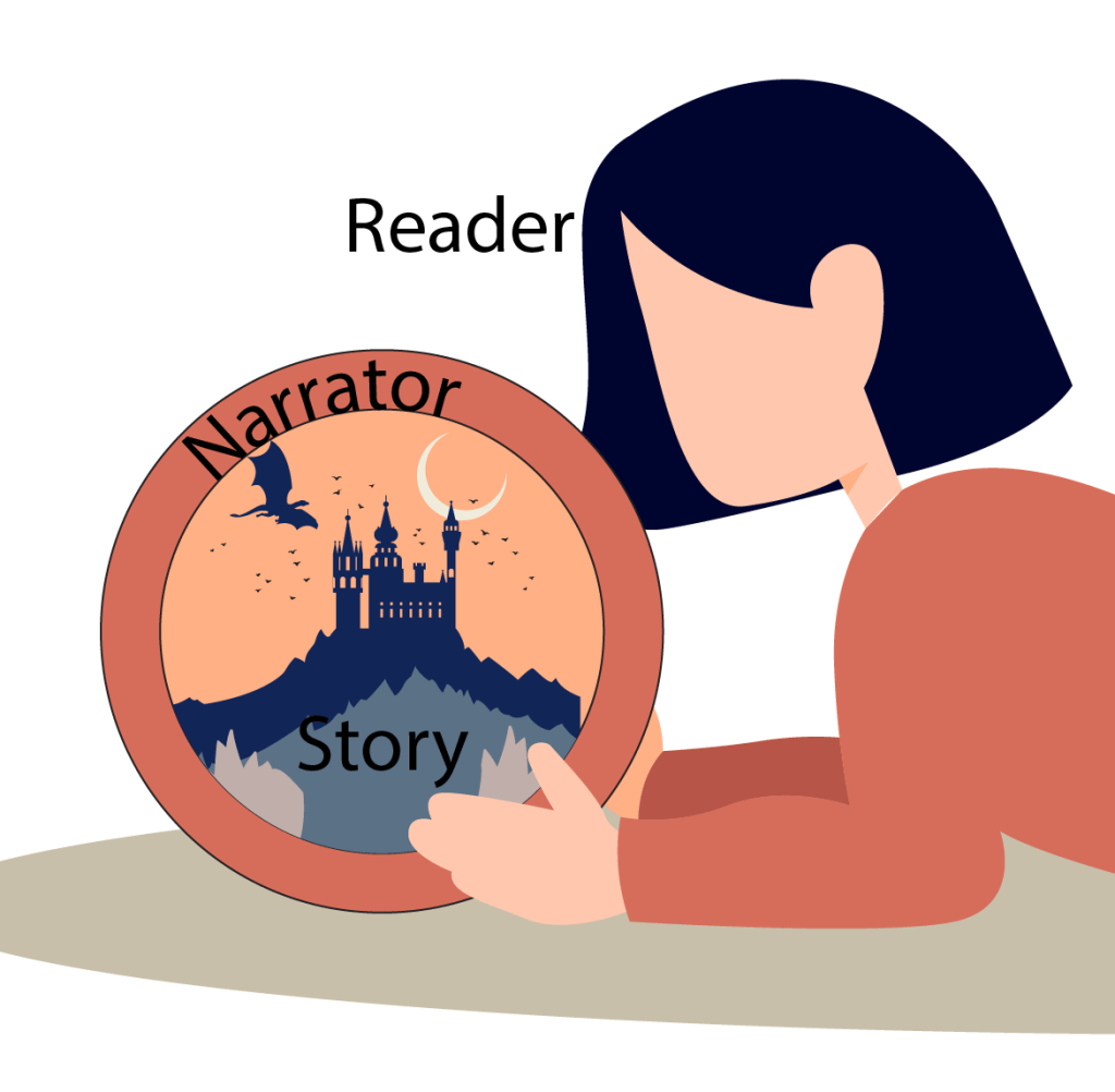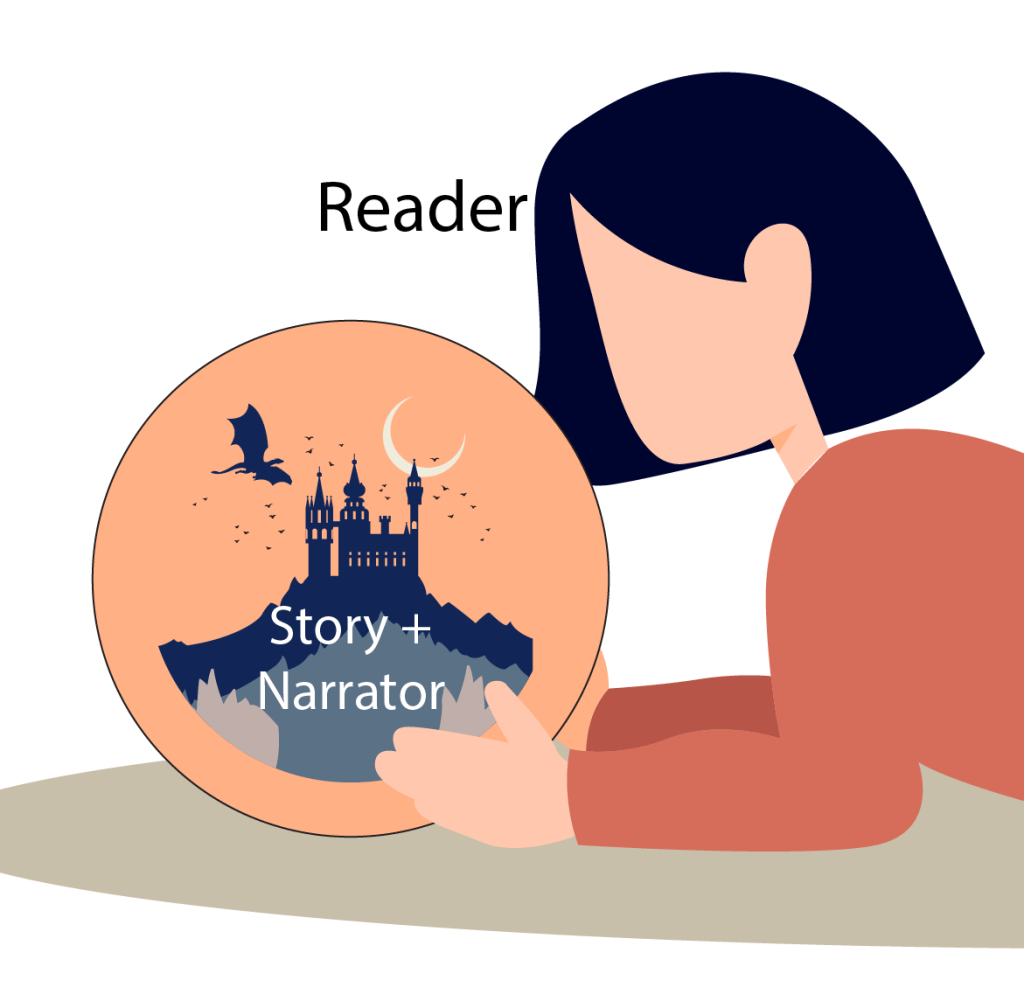 As I talked about in the post Point of View, if the story is in third person (using he/she), then the narrator is outside the story. Most stories are written like this. In this situation, there are actually two bubbles: one with the narrator in it and one inside that with the story in it.