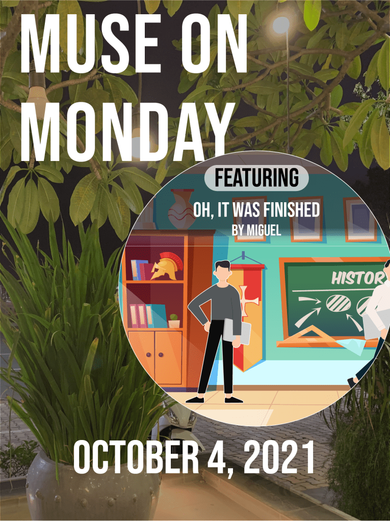 Muse on Monday is a weekly writing challenge. Anyone can join and the idea is to write a story based on the prompt below. If you have an idea for a future prompt, send me an email at greenwalledtreehouse@gmail.com.