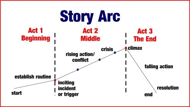 In the last Writing Corner post, we looked at the beginning part of the story arc, where we are introduced to the setting, main characters and the story leads up to the event where the main conflict begins. Every story is different, so it is hard to generalize, but that is usually the form.